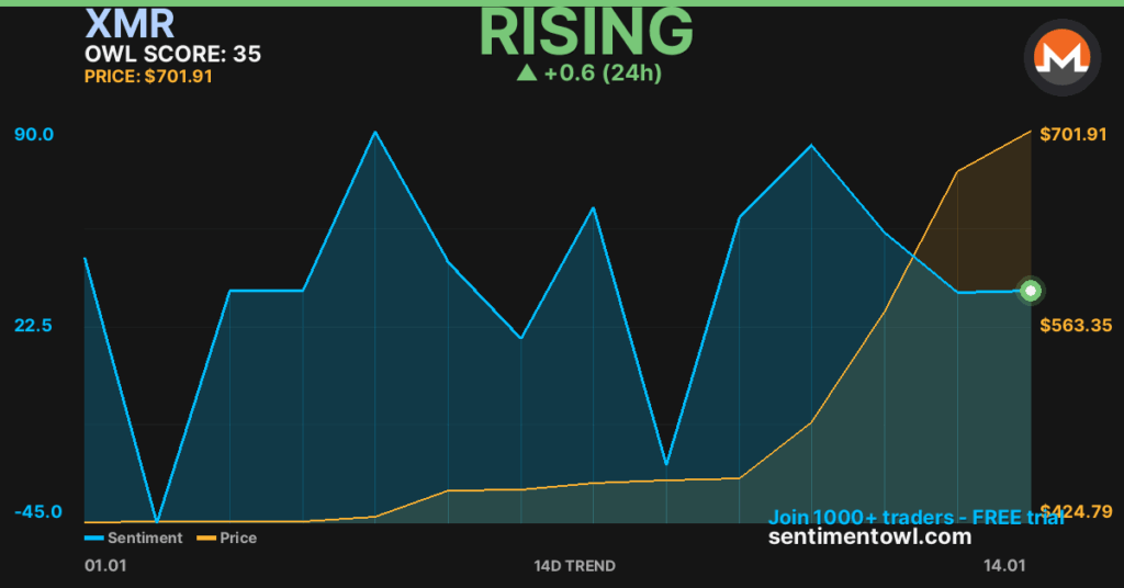 Monero hitting new ATHs! What's driving the rally? 🚀💰💬 sentimentowl.com $XMR #crypto #sentiment