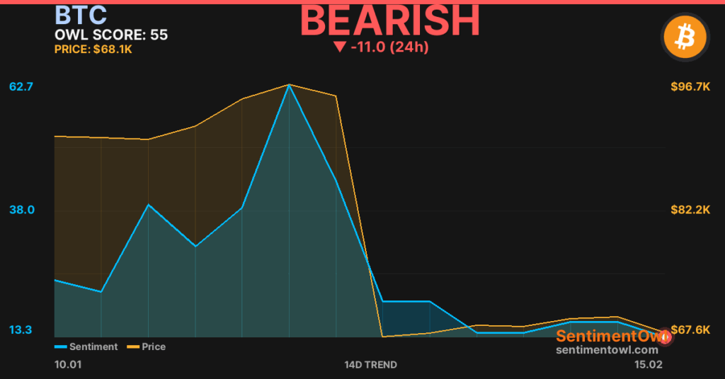 February 20, 2026 45 Market SentimentNeutral16 cryptocurrencies analyzed Top Bullish NFT80 ROSE80 XMR80 Top Bearish DAI-70 GNO-70 LINK16 Market Conditions Neutral Market Track real-time sentiment for 200+ cryptocurrencies View Full…
